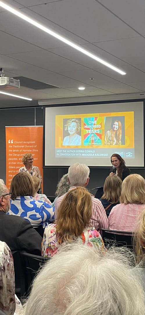 This was the first time I’d heard Debra speak, and I felt like I’d known her for years. She was everything I expected her to be – warm, down-to-earth, insightful, funny, wise – and totally passionate about her work. At one stage, Debra became teary thinking about a character in her new book. “I know, I know he’s just a fictional character I created, but he went through so much.” I’m a middle-aged, early-stage writer, but this really resonated with me. Our characters are very real to us. Hearing Debra speak with such affection for her characters, learning about the research that underpinned her storylines and peeking behind the curtain of her disciplined writing practice was totally inspiring. I can’t wait to read One Hundred Years of Betty @allenandunwin – and have already started enjoying the One Hundred Years of Betty playlist on Spotify! Thanks to the Hornsby Library staff, and another shoutout to Michaela for eliciting such gems from Debra.