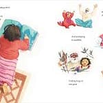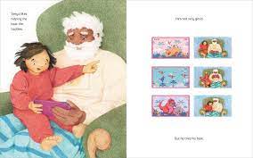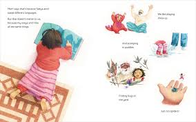 aberera. The title oozes irony as the use of onomatopoeia demonstrates that the time with seeya is anything but quiet. The language difference between the young girl and her grandfather is certainly no barrier to their treasured time together, filled with shared experiences, loads of fun and brimming with love. Dabarera’s gentle illustrations enhance the sense of togetherness, and the endpapers are a lovely touch.